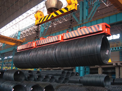 其特殊磁極適合于不同直徑的盤圓,電磁鐵的選擇取決于盤圓的長度,如電磁鐵足夠長,則一次可沿長度方向吊運(yùn)幾卷盤圓。
