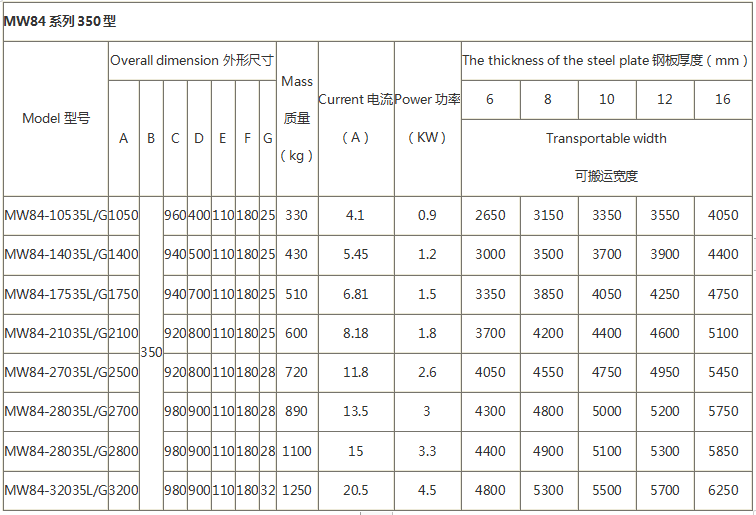 MW84系列500型 可搬運(yùn)鋼板張數(shù):鋼板厚度≦10mm可搬運(yùn)4張,10mm﹤鋼板厚度≦16mm可搬運(yùn)3張, 16mm﹤鋼板厚度≦25mm可搬運(yùn)2張,鋼板厚度﹥25mm單張吊運(yùn) MW84series500model Numberofplatescanbemoved: 4platescanbemo